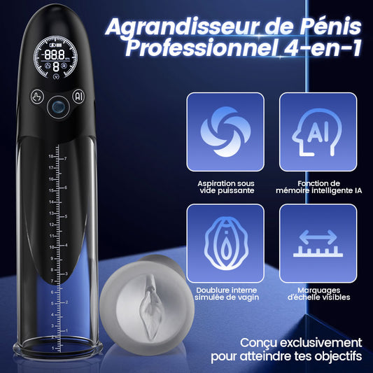 BathFun - Pompe à pénis professionnelle Puissante aspiration sous vide Étanche à 100 % Fonction d'entraînement intelligente