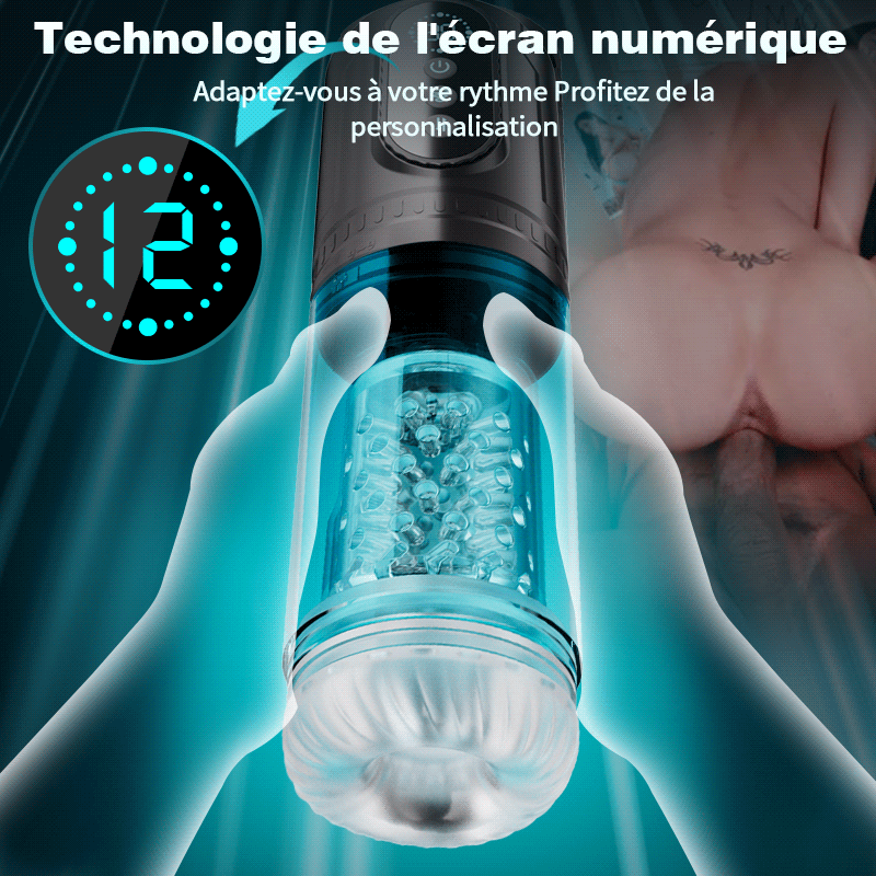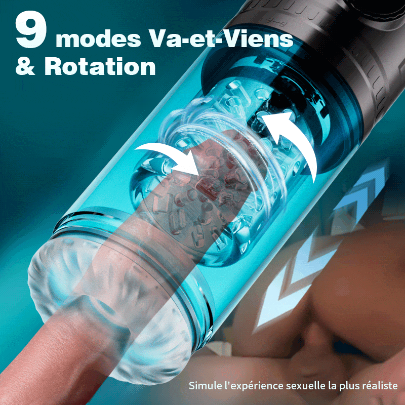 9 types de pivotement rétractable associés à 9 types de succion pour une expérience de masturbation du pénis inégalée.
